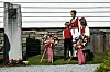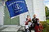 Frå feiringa av 17. mai i Øystese. På kyrkjegarden vart det lagt ned kransar til minne om dei som kjempa for Noreg i krigen. Lilja, Tord, pappa Jan Gunnar Toft og mamma Ingunn Kråkevik held skulemusikklagsfana.