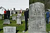Kransenedlegging på Vikøy kyrkjegard til minne om falne i krigen. Selma og Baard Johannes Pfeil Vikøy la ned kransane. Mette Solli Fonneland spela.
