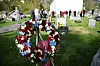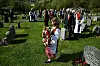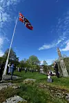 Frå feiringa av 17. mai i Øystese. På kyrkjegarden vart det lagt ned kransar til minne om dei som kjempa for Noreg i krigen.