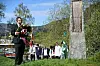 Minnemarkering på Straumhaugen i Norheimsund for falne i krigen. Håkon Valland tala før kransenedlegginga. Ingmar Lid spela med skulemusikklaget.