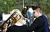 Frå feiringa av 17. mai i Øystese. På kyrkjegarden vart det lagt ned kransar til minne om dei som kjempa for Noreg i krigen. Gjermund og Svein Johannes Stuve i Øystese Musikklag.