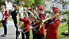 Frå feiringa av 17. mai i Øystese. Øystese Musikklag spelar ved Mikkjelsflaten, dirigert av Kåre Stokke.