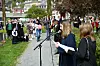 Minnemarkering på Straumhaugen i Norheimsund for falne i krigen. Håkon Valland tala før kransenedlegginga.