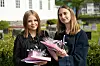 Frå feiringa av 17. mai i Øystese. På kyrkjegarden vart det lagt ned kransar til minne om dei som kjempa for Noreg i krigen. Konfirmantane Elisabeta Amanalachoai (t.h.) og Carmen Oldervoll stod for det.