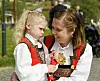 Julia og mamma Maria Rykkje i bunad i Øystese.