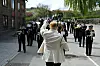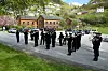 Frå feiringa av 17. mai i Øystese. På kyrkjegarden vart det lagt ned kransar til minne om dei som kjempa for Noreg i krigen. Øystese Skulemusikklag spelar.