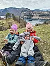 Ole Magnus, Sveinung og Tiril Elise nyt påsken med solskin, snø og ikkje minst påskegodt.Monica Vestbø Nygard