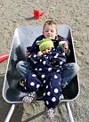 Brørne Arlian og Torvald Tjongsbotnen nyt sola i trillebåra.MJ Tjongsbotnen