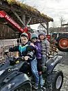 Syskenborn som tøffar seg på firhjulingen til onkel. Arlian, Hennie og Sigve.MJ Tjongsbotnen