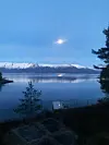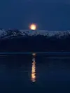 Fullmånen over Vedasnerta tidleg påskemorgon speglar seg i Hissfjorden.Odd Hjartnes