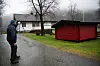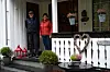 Ved inngangsdøra står ei rekkje kubbenissar. Ei fleirfarga, lysande stjerne heng på veggen. Eit hjarte og eit skilt med teksten «Velkommen til oss» møter bladfyken. Ved den kvite einebustaden ligg seks små, raude hytter med svarte tak. Det er ikkje mange meterane frå huset til hyttene.