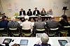 «Korleis kunne ein etter så kort tid komma i ein økonomisk situasjon der ein må spara 102 millionar kroner på drifta på eit år?» spør Sigrid Brattabø Handegard. Her frå eit møte i fellesnemnda på Thon Hotel Sandven i 2017. Frå venstre: ordførar Jon Larsgard, ordførar Solfrid Borge, ordførar Roald Aga Haug, prosjektleiar Ingjerd Astad og noverande kommunesekretær Ragnvald Joakimsen.