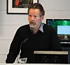 «Jeg er ganske usikker på om man skal planlegge og bygge noe før man har en helhet», skriv Bjarte Helland. Her presenterer Knut Endre Øyri i GBS Entreprenør AS planen om cruisehamn i eit møte i sommar.