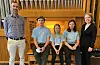 Frå venstre: Orgellærar David Scott Hamnes, orgelelev Emil Øgård, korsongarar Jenny Samland og Sunniva Bugge Dahle og barne- og ungdomskordirigent Yngvild Wattum Stuksrud. Her er dei samla i Tjensvoll kirke i Stavanger.