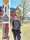 Kunstnar Frank Åsnes med pålen han fekk frå Fykse Grendahus og måla. Yvette Lardinois Boltrar seg med fargar og perspektiv Håkon Norheim Håkon Norheim Håkon Norheim Journalist Publisert 28.04.2023 - 05:00 kunstnarhuset messen kultur biletkunst ålvik kultur og underhaldning