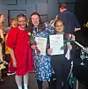 Frå venstre: Teatercamp-ansvarleg Amalie Jensen Tolo, Maud Sofi Fimland Vik og Isabel Eikeland tok del i framsyninga på scena til Det Vestnorske Teateret førre veke. Skodespelarane fekk diplom for innsatsen.