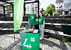 Sivert Gåsemyr, Sofie Ljones og Trude Ljones rigga seg til med stand på torget i Norheimsund. Jonas Hodneland Sundfjord hadde ikkje tid til å vera med på biletet, då han var oppteken med å prata med nyfikne forbipasserande.