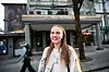 Veninnene som er med på framsyninga, ler og tullar med henne når Lisa vert fotografert av HF utanfor teateret på Ole Bulls Plass. Oppe til venstre heng reklamebanneret for framsyninga ho spelar i. Sigbjørn Linga Flyg mot nye høgder Sigbjørn Linga Sigbjørn Linga Bladstyrar Publisert 28.04.2026 - 04:00 bergen kultur kultur og underhaldning lisa grane hisdal musikk teater