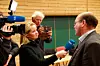 Samla: Gruppeleiar Olav-Magnus Hammer har ikkje køyrt noko sololøp i kommunereformsaka, skriv Jondal Ap. Her vert Hammer intervjua av Tale Hauso i NRK etter møtet om kommunestruktur 5. oktober.Arkivfoto: Sigbjørn Linga