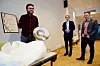 Sjur Vågen tok imot målprisen på vegner av Visit Hardangerfjord AS, med leiar Torstein Vik Århus i Hordaland Mållag og ordførar Torgeir Næss (t.h.) som vitne. Ordføraren har sjølv vore medlem i mållaget sidan han var ungdom.