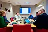 Debatt: Samarbeidsutvalet for politikk og administrasjon avslutta sitt arbeid i januar. No er det opp til organa med vedtaksmakt å leggja føringar for kontakten og informasjonsflyten mellom folkevalde og administrasjonen. Biletet er frå utvalsmøtet 21. november. Frå venstre: administrativ rådgjevar Kari W. Vik, teknisk sjef Lars Ese Ur, Arne Sandven (KrF, Halvard Lilletveit (Ap), rådmann Anita Hesthamar og ordførar Jostein Ljones (Sp).