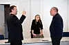 Både Odd Valland Bovim (MDG, t.v.) og Johanne Neteland (Sp) reagerte då varaordførar Frode Nygård (Frp) tok til orde for at søknader som rådmannen vil avslå, skal til politisk handsaming, medan «ja-saker» ikkje skal handsamast politisk. Vel å merka føreslo han det ikkje.