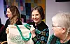 Kjersti Toppe (Sp) fekk ei bokstavleg tala berekraftig gåve frå Grannehjelpa. Til høgre for henne sit Brita Træbakken, ei av dei engasjerte i Grannehjelpa. Til venstre sit kommunikasjonsrådgjevar Margrete Løbben Hanssen i Barne- og familiedepartementet.