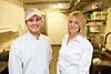 Samarbeid: Kokk Helge Fonneland Bu og Jennifer Falck samarbeider om utvikling av nye produkt som kan kompensera for bortfallet av produksjonen av institusjonsmiddagar. Slik kan verksemda få fleire bein å stå på. Dagleg leiar Steinar Langenes seier at keiteringverksemd og andre tilbod skal halda fram og helst veksa.