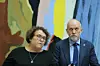 Frp sin landbrukspolitiske talsperson, Morten Ørsal Johansen, og landbruksminister Olaug Bollestad (KrF) presenterte detaljane om kompensasjonen for pelsdyrbøndene tysdag. Foto: Stian Lysberg Solum/NTB scanpix/NPK