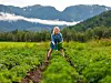 Bonde og kokebokforfattar Margit Dale humrar. Sjølv har ho nett hausta eitt mål med mandel og Beate som har fått plass i jordkjellaren på garden Systog Dale i Valle i Setesdal.