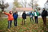 Trond Kvamme og Therese Håland ynskjer å byggja anneks, garasje og naust, og fekk lokalpolitisk medhald. Her er planutvalet på synfaring 1. november. Frå venstre: Silje Aksnes (Sp), Even Øyri (Ap), Geir Madsen (SV), Håland, Kvamme og Jostein Ljones (Sp). Om lag der dei står her, er det registrert ei hol eik, naturtypen som er grunnlaget for innvendingane frå Statsforvaltaren.