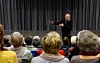 Undervegs: Stener Kvinnsland i Helse i Hardanger AS er i ferd med å inngå intensjonsavtalar med det offentlege. Kva avtalane går ut på, er enno ikkje kjent. Her talar den tidlegare sjukehusdirektøren til frammøtte på eit arrangement i regi av Grannehjelpa i Norheimsund i 2016.Arkivfoto: Sigbjørn Linga
