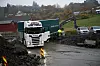 Ein krapp sving sette stoppar for den vidare ferda for semitraileren.