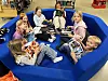 Anna og Akilah starta leseklubben. Frå venstre: Fia Johanne Berge (9), Anna Katrina Leirstein (10), Vilde Bakkely Fugleberg (10), Øyvor Bell Berge (9), Akilah Moola-Nernæs (10), Malina Gravdal (9), og Emil Neteland (10). Biletet er teke ved eit tidlegare høve.