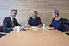 Eldsjelutdeling: Olav Botnen (t.v.) i Sparebanken vest legg ti tusenlappar på bordet til årets eldsjel, men pengane må gjevast vekk. Dagleg leiar Sidsel Haugen og fungerande styreleiar Torgeir Magnar Børve i Grannehjelpa gler seg over draghjelpa.
