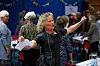 Dagleg leiar Gunn Hilde Øymo i Grannehjelpa gjekk i bresjen då festgjestene vart utfordra til å delta i «regndans» til afrikanske tonar.