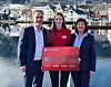 Gjengen i Norheimsund Røde Kors Hjelpekorps vil nytta pengegåva til kompetanseheving og oppgradering av utstyr. Frå venstre: banksjef Lars Audun Torvik i Sparebanken Vest Norheimsund, leiar Ingeborg Steine Jensen i Norheimsund Røde Kors Hjelpekorps og kundekonsulent Astrid Sundfjord i Sparebanken Vest.