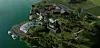 Til venstre ligg kaien og flytebryggja. Det brearmliknande kulturhuset med gjennomsiktig tak ligg ovanfor kaien, og hotelldelen med eit offentleg tilgjengeleg til høgre for det igjen på framsida av Akkjerhaugen. I bakgrunnen ligg Hardanger House og Vikevollen.