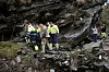 – Dette er vel det næraste me kjem å gå i tog i år, seier Thor Inge Haltvik (nærast) når brannmannskapet med små, sakte steg bergar Roffe opp frå bekkefaret. Bøndene og eigarane Marion og Ronny Bakke-Byrkjeland fylgjer redningsaksjonen.