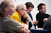 Geir Madsen (SV) er ofte samde med grannane i heradsstyresalen, men ikkje i spørsmålet om å seia nei før cruisesøknaden er komen. Odd Valland Bovim (MDG) trur ikkje folket eller næringslivet ynskjer cruisehamna. Frå venstre: Håvard Gjerde (R), Madsen, Bovim og Bjarte Helland (INP).