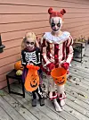 Elli og Alida G. Myklebust i Øystese er klare for feiring av halloween. Fyrst samling med klassen, deretter ein runde i bygda. Pass på!Ramona Myklebust