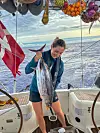 Johanne Letnes Hoflandsdal med ei makrellstørje fiska opp frå djupet i Stillehavet. Privat Skal kryssa Stillehavet Ole Kristian Grønneng Ole Kristian Grønneng Ole Kristian Grønneng Journalist Publisert 08.11.2025 - 04:00 Sist oppdatert 08.11.2025 - 16:26 hobby friluftsliv båt reiseliv natur og miljø nyhende