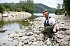 – Er han over sperregrensa? spør HF når Sveinung Rotevatn (V) dreg i land endå ein miniaure i elva. Om ikkje anna bidrog stortingskandidaten litt til kultiveringsfisket i Fitjadalsvatnet. Napp fekk han på nær sagt kvart einaste kast.