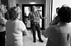 Jostein Ljones (Sp) meiner det er beklageleg at Kari Mostad (MDG, t.h.) framstiller kommuneplanprosessen kring Kvamsøy-saka som noko som ikkje toler dagens lys.
