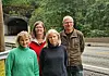 Ikkje mange timar etter at dette biletet vart teke, deisa ein stor stein i bakken i området. Frå venstre: 1.-kandidat Marthe Hammer og 3.-kandidat Marianne Sæhle til Vestland fylkesting, partileiar Kirsti Bergstø og 1.-kandidat Geir Madsen i Kvam.