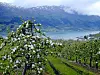 Fruktbløming i Hardanger. «Dei milde fruktbygdene står i sterk kontrast til det dramatiske landskapet rundt», skriv regjeringa om det nye utvalde kulturlandskapet. Illustrasjonsfoto: Kari Hamre / NPK