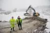 Satsar: Kristoffer Nes (t.v.) og Tormod Berge er ikkje gamle karane, men har likevel vore ute ei vinternatt før. Her er dei på tomta dei arbeider med ovanfor Busdalen i Øystese. I tillegg til tomteførebuinga gjekk oppdraget ut på å riva eit brannråka hus på Lundanes.