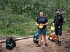 «Putter», «backhand», «eagle», «out of bounds» og «drop zone». Mange engelske ord og uttrykk er i bruk når ein driv med frisbeegolf. Eventuelt diskgolf. Her gjer Andrea Sæhle Samland seg klar til eit kast, med sambuar Aleksander Bråten som vitne.
