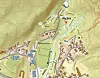 Dei svarte strekane syner kvar traseane for frisbeegolfbanen kjem. Markøren viser kvar brua skal liggja.