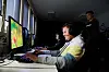 – Det er gøy. Ein lærer mykje, seier Alexander Nitter om hobbyen. Her spelar han Fortnite. Bak han ser me Sondre Fagerheim Lunestad og Brigt Lillevik Botnen (t.h.). For 500 kroner i året kan medlemene spela eitt spel. Vil dei nytta fleire, veks kontingenten litt.
